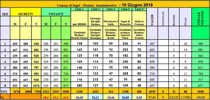 SEGNI – Come noto erano cinque le liste, ed altrettanti i candidati sindaco, che i segnini erano chiamati a scegliere in questa tornata elettorale anticipata.