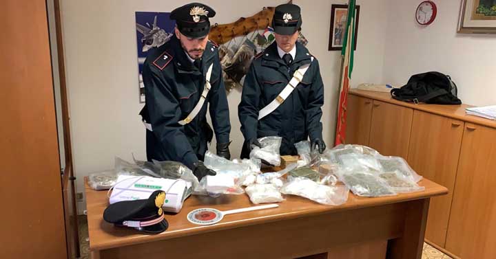 In due da L’Aquila a Cerveteri per acquistare droga. A casa del fornitore 8Kg tra cocaina, hashish e marijuana. I Carabinieri lo arrestano insieme agli acquirenti