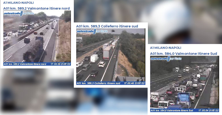 Condizioni critiche, a causa delle alte temperature, per gli occupanti dei veicoli in coda.