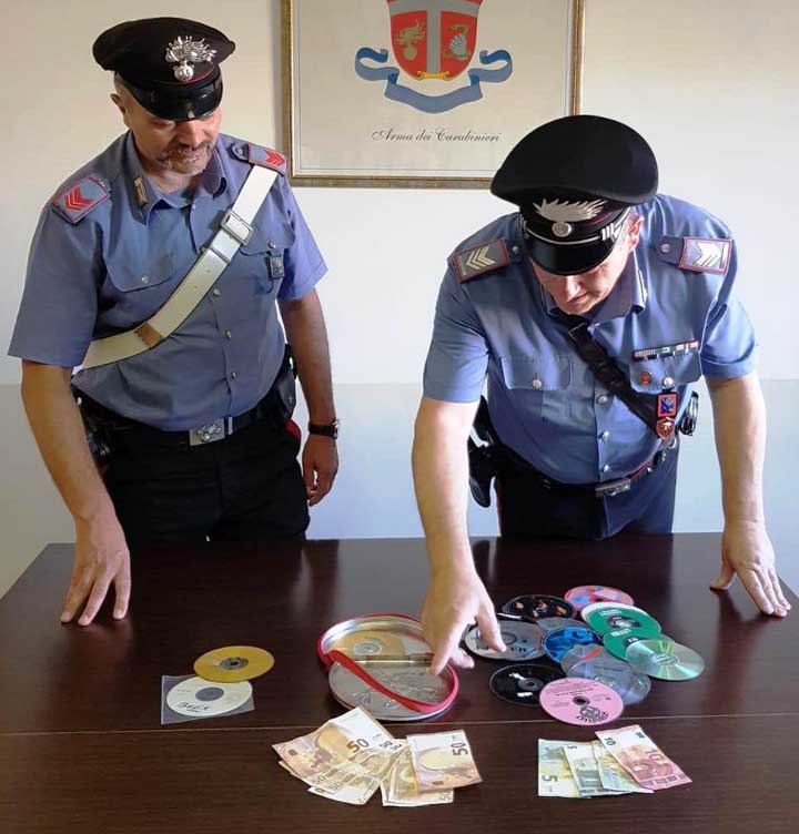 A seguito della perquisizione personale sono stati rinvenuti i soldi truffati al 78enne, mentre nell’autovettura i militari hanno rinvenuto 27 CD musicali, pronti per essere utilizzati per analoghe truffe.