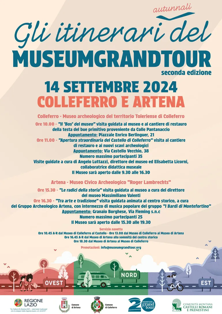 COLLEFERRO | ARTENA – Nell’ambito degli Itinerari (autunnali) del MuseumGrandTour seconda edizione, la giornata di Sabato 14 Settembre coinvolge il Museo Archeologico del Territorio Toleriense di Colleferro ed il Museo Civico Archeologico “Roger Lambrechts” di Artena.