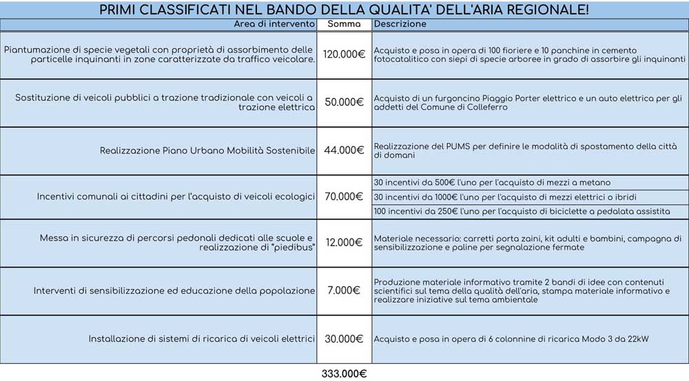 La Regione ha finanziato il Comune di Colleferro per 200mila euro da dedicare a progetti per la qualità dell’aria
