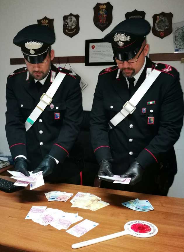 A quel punto i militari hanno informato l’Autorità Giudiziaria che ha disposto che fosse eseguita una perquisizione a carico dell’indagato, all’esito della quale i Carabinieri di Ladispoli hanno rinvenuto nella sua disponibilità 25 banconote da 20 euro risultate essere false, e pertanto sottoposte a sequestro.