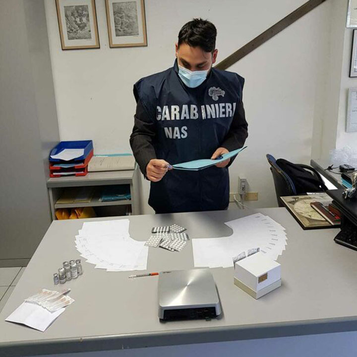 Le indagini hanno permesso di trovare e sottoporre a sequestro diverso materiale tra cui false ricette mediche, nonché 200 tra compresse e fiale di farmaci ad azione dopante.