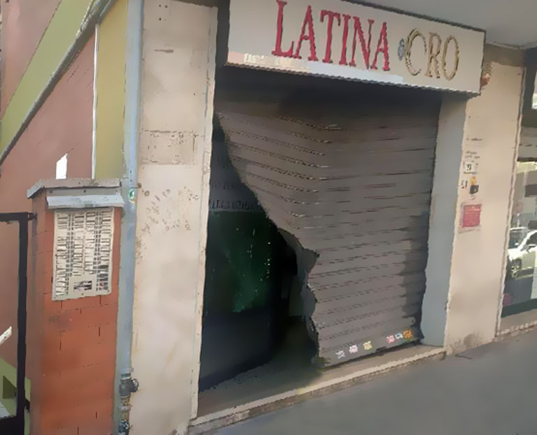 LATINA – Erano da poco trascorse le 3,30 della notte tra il 18 ed il 19 Luglio quando, un mezzo utilizzato come ariete sfondava la vetrina di “Latina-Oro” al civico 21 di Via Pontinia.