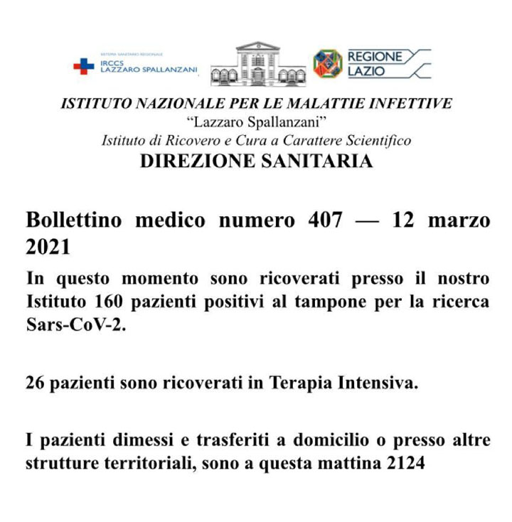 Bollettino medico numero 407 – 12 Marzo 2021
