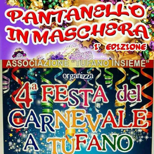 Alla quarta edizione consecutiva l’Associazione Tufano Insieme, da anni impegnata ad organizzare un Carnevale degno della tradizione italiana, propone un programma intenso e pieno di sorprese.