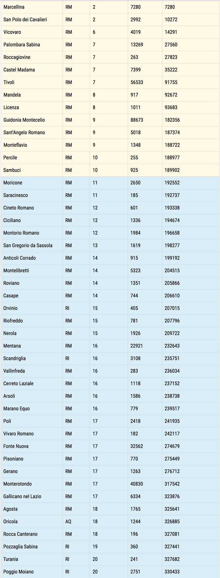 Le distanze sono calcolate in base alle coordinate geografiche del Municipio (Istat).