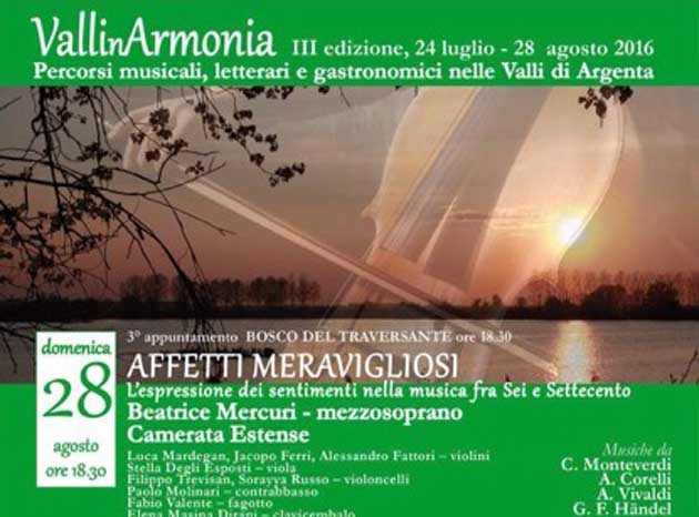 Il nostro mezzosoprano Beatrice Mercuri sarà impegnata in un concerto a Ferrara nella suggestiva cornice del Bosco del Traversante con l’Ensemble Camerata Estense al Bosco del traversante domenica 28 agosto alle ore 18.30 per l’ultimo appuntamento con “Affetti Meravigliosi” di “Valli in Armonia”.