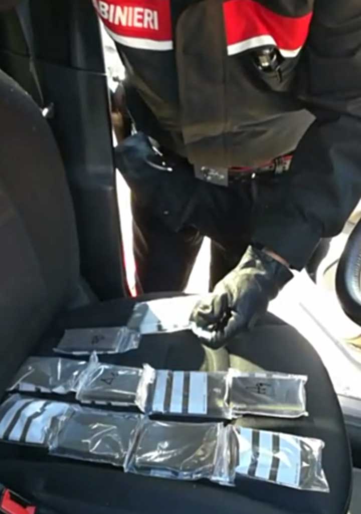 A seguito del controllo, i Carabinieri hanno rinvenuto nell’autovettura una confezione di hashish del peso di 1 Kg, suddiviso in 10 panetti singoli, mentre il conducente dello scooter aveva in tasca 1.315 euro, sequestrati poiché ritenuti provento dell’avvenuta cessione dello stupefacente.