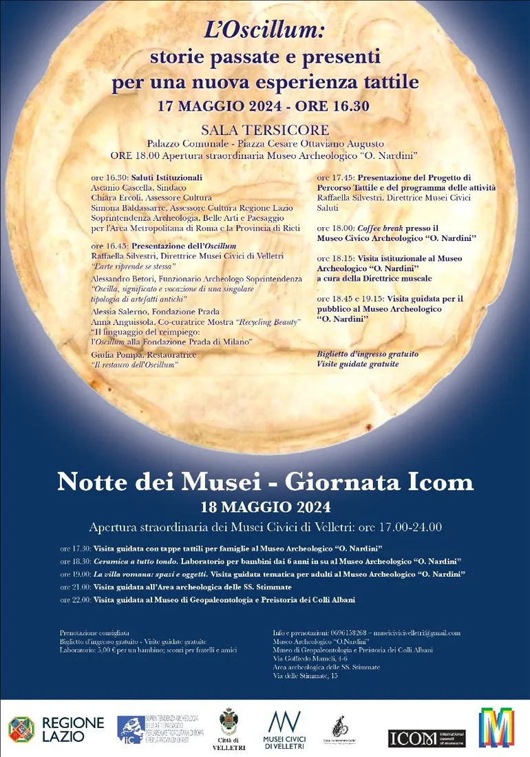 Venerdì 17 Maggio alle ore 16.30 si terrà presso la Sala Tersicore del Palazzo comunale, la conferenza L’Oscillum: storie passate e presenti per una nuova esperienza tattile.