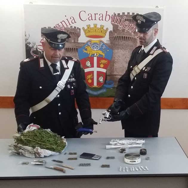 Questa mattina, nel corso delle fasi esecutive dei provvedimenti restrittivi ed a seguito delle perquisizioni presso le abitazioni degli indagati, i Carabinieri hanno rinvenuto una pistola a tamburo con 34 cartucce, di diverso calibro, perfettamente funzionante e custodita all’interno di un forno ubicato sul retro dell’abitazione, dove sono stati inoltre rinvenuti 60 grammi di hashish, suddivisi in nove stecche pronte per la vendita e 290 grammi di marijuana.