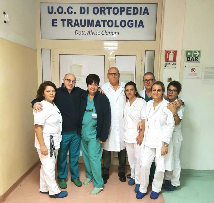 Il giorno successivo la paziente veniva assistita nella deambulazione con grande soddisfazione dei familiari e di tutta l’equipe (in foto) della Uoc Ortopedia Traumatologia diretta dal Dr. Alvise Clarioni.
