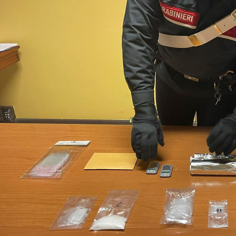 La perquisizione personale sul posto ha portato al rinvenimento di una dose di hashish e circa 320 euro in contanti, motivo per cui i Carabinieri hanno esteso il controllo al domicilio del 22enne dove hanno rinvenuto e sequestrato 2 dosi di cocaina e circa 150 grammi di metanfetamina, oltre a bilancini di precisione e materiale utile per il confezionamento dello stupefacente.