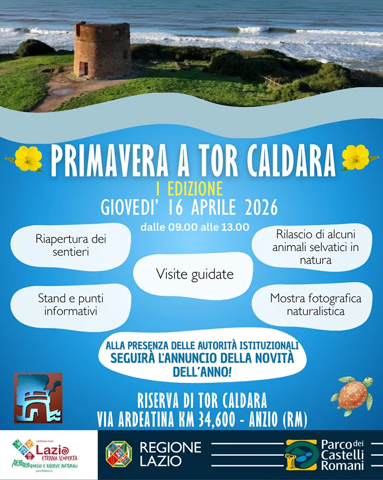 PARCO DEI CASTELLI ROMANI (Luciana Vinci) – L’Ente Parco dei Castelli Romani, gestore della Riserva di Tor Caldara, è lieto di annunciare la 1a Festa di Primavera presso la Riserva regionale di Tor Caldara ad Anzio, in programma Giovedì 16 Aprile dalle ore 9 alle 13.