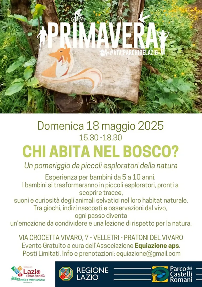 VELLETRI (Luciana Vinci) – Domenica 18 Maggio dalle ore 15.30 alle 18.30, si svolgerà l’iniziativa “Chi Abita nel Bosco?”.