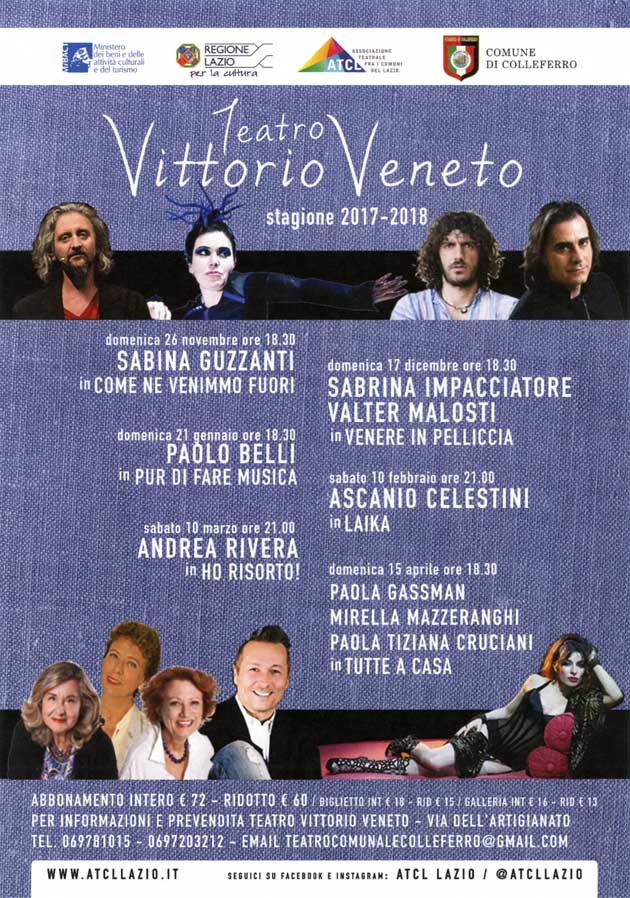 COLLEFERRO (RM) – Parte oggi, 26 Novembre, alle ore 18, con “Come ne venimmo fuori” di e con Sabina Guzzanti, la Stagione Teatrale 2017/2018 del Comune di Colleferro al Teatro Vittorio Veneto.