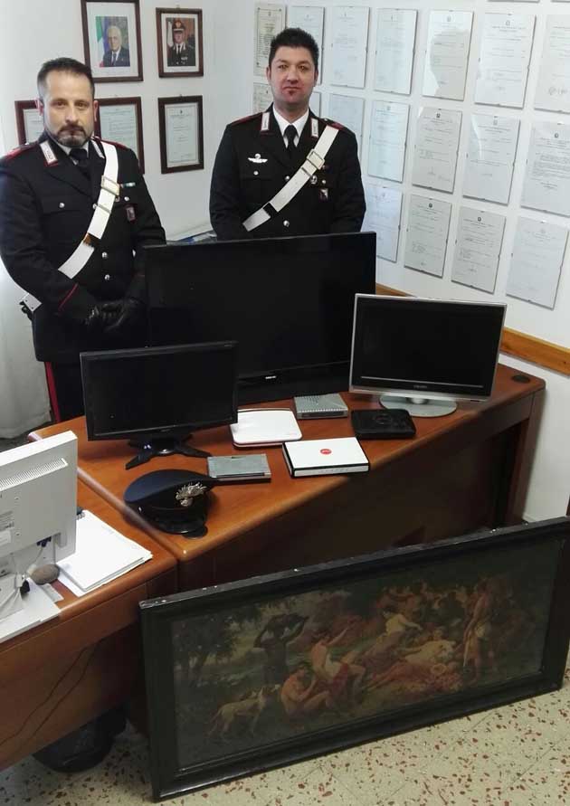 • un quadro con cornice in legno raffigurante “un banchetto svolto in un bosco”, di tenue valore, risultato asportato in Piglio l’11 Novembre 2016 e già restituito all’avente diritto;