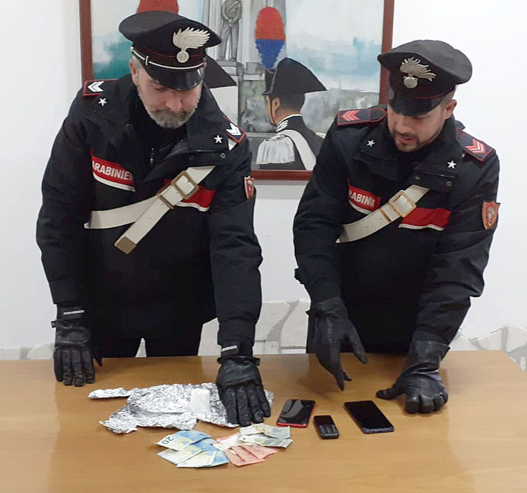La successiva perquisizione ha permesso di rinvenire la somma in contante di 130 euro, ritenuta il provento di attività illecita.