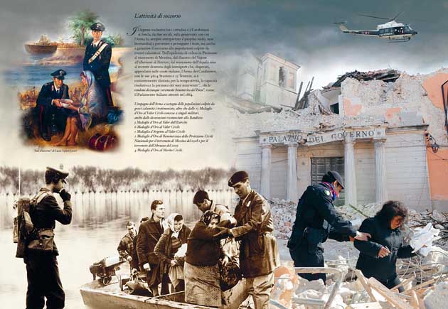 Il legame esclusivo fra i cittadini e i Carabinieri si fonda, da due secoli, sulla generosità con cui l’Arma ha sempre interpretato il proprio ruolo, non limitandosi a prevenire e perseguire i reati, ma anche a garantire il soccorso alle popolazioni colpite da eventi calamitosi. Dall’epidemia di colera in Piemonte al maremoto di Messina, dal disastro del Vajont all’alluvione di Firenze, dal terremoto dell’Aquila sino al recente dramma degli immigrati che, disperati, approdano sulle coste italiane, l’Arma dei Carabinieri, con le sue 4604 Stazioni e 55 Tenenze, si è costantemente distinta per la tempestività, la capacità risolutiva e la premura dei suoi interventi “… che la rendono dovunque veramente benemerita del Paese”, come il Parlamento italiano attestò nel 1864.