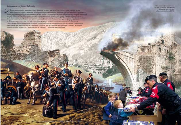 L’accresciuta necessità di intervenire, sotto l’egida delle Nazioni Unite, della NATO o dell’Unione Europea, in aree particolarmente sensibili a protezione delle comunità martoriate da anni di sanguinosi conflitti, ha esaltato la vocazione di forza di pacificazione dell’Arma, maturata grazie ad una secolare e riconosciuta esperienza nelle missioni internazionali, risalente alla guerra di Crimea del 1855. L’Arma si è sempre più evoluta aggiungendo ai tradizionali compiti di polizia militare all’estero quelli di osservazione del rispetto dei diritti umani e di collegamento con i poteri locali. Nei Balcani, dove i Carabinieri continuano ad operare ininterrottamente da 18 anni, è stata sperimentata con successo un’innovativa dottrina di impiego delle forze (la Multinational Specialized Unit, nota anche con l’acronimo MSU) per assolvere contestualmente compiti di polizia civile e polizia militare volti al mantenimento della pace. Gli eccellenti risultati conseguiti hanno reso i Carabinieri leader mondiali di tale attività, suscitando il plauso dei Paesi esteri; al riguardo, uno dei Presidenti degli Stati Uniti d’America, nel riferirsi alla professionalità acquisita dai Carabinieri, ebbe ad affermare: “… sul terreno, fanno la differenza!”.