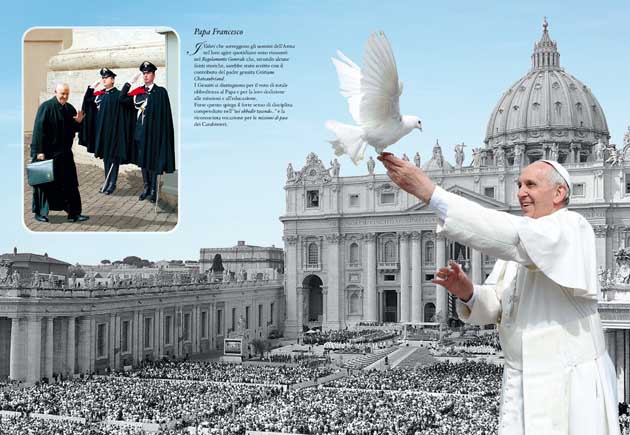 Il Col. Antonio Menga, nel riportare integralmente i contenuti della prefazione tenuta dal Comandante Generale Leonardo Gallitelli, evidenziate in occasione della presentazione ufficiale tenutasi nella mattinata odierna presso la Scuola Ufficiali di Roma, ha posto l’accento sul filo conduttore delle “tavole” del calendario, che raccontano gli ultimi cinquant’anni di vita dell’Arma, dal 1964 al 2014. “Una Storia nella quale il Carabiniere è stato sempre generosamente presente: dal disastro del Vajont all’alluvione di Firenze, al contrasto dei sequestri di persona, dell’eversione, della mafia, alle missioni di pace nei Balcani, in Afghanistan e in Iraq, con la dolorosa memoria di Nassiriya. Celebrare i duecento anni della Storia dell’Arma significa consolidare ed arricchire quel copioso patrimonio di valori umani ed epici che le generazioni precedenti hanno tramandato. Un patrimonio mirabilmente rappresentato dall’immagine di copertina del Calendario, che è la Celebre “Pattuglia nella tormenta” dello scultore fiorentino Antonio Berti, un’opera che esprime tutto il senso della nostra missione. Ad essa si ispira il monumento che sarà posato nei giardini prospicienti il Palazzo del Quirinale, intitolati all’Unità d’Italia. L’opera monumentale è in corso di realizzazione grazie soprattutto al sostegno dei Comuni d’Italia, che così testimoniano quel vincolo speciale tra le Comunità e i propri Carabinieri, che il tempo ha reso sempre più forte e che, come è stato recentemente affermato da un’autorevole firma del giornalismo, fa dell’Arma, nelle coscienze e nelle aspettative dei cittadini “l’Arma degli Italiani”. Un riconoscimento impegnativo che, alle soglie del terzo secolo di vita delle Istituzioni, diventa prezioso lievito di consapevole responsabilità e conferma tutti i Carabinieri nel proposito di continuare a servire, silenziosamente e con dedizione, l’Italia, le sue Leggi, il suo Popolo”.