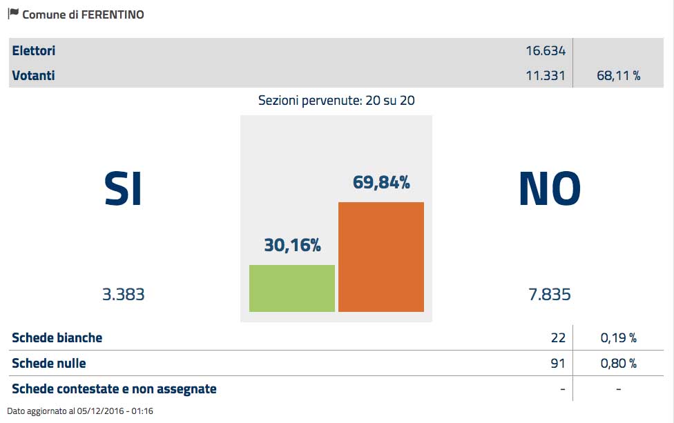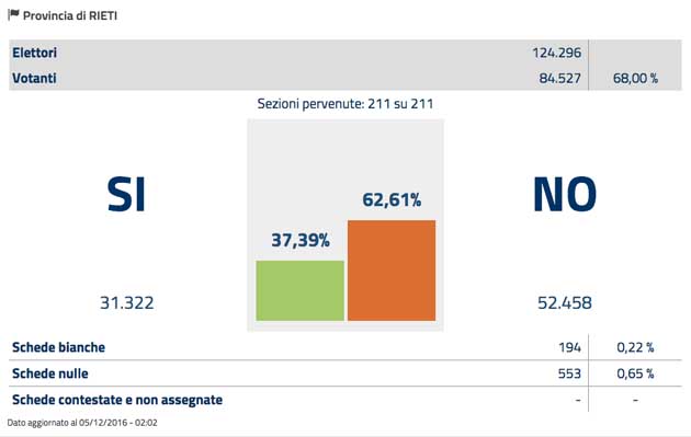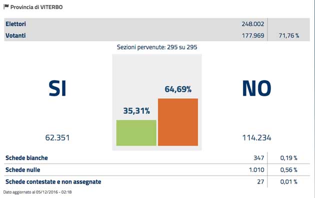 Referendum. Ovunque nel Lazio vince il NO. I risultati delle Province e di alcuni Comuni. Il Presidente del Consiglio Renzi si dimette [Video]