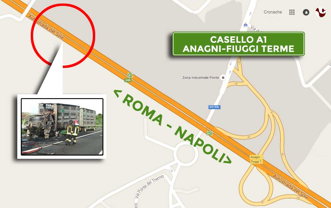 COLLEFERRO | ANAGNI (RM) – Nella mattinata di oggi, 9 Aprile, poco dopo le 7, sul tratto autostradale compreso tra i caselli di Colleferro ed Anagni-Fiugi Terme, in direzione Napoli, un autotreno destinato al trasporto di animali ha preso fuoco richiedendo l’intervento dei Vigili del Fuoco nonché la chiusura del tratto autostradale.