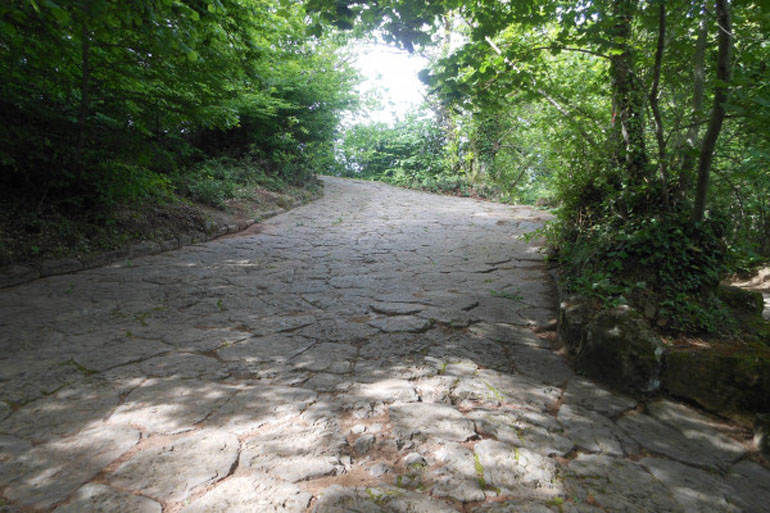 Questa antica strada ha mantenuto l’originale basolato romano dell’epoca, quando il sentiero veniva battuto per raggiungere il tempio di Giove Laziale, proprio sulla cima del Monte Cavo. Oggi il tempio non è più visitabile, tuttavia, lungo la strada sono ancora ammirabili resti di epoca romana.