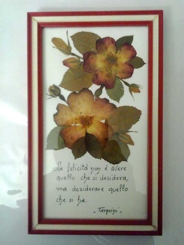 Tutte le piante più belle erano in mostra nel loro regno di Via Mediana. Era Natalia che curava i fiori, divenuti, per lei, fonte di opere meravigliose. Infatti, gli esemplari più belli li essiccava per creare lavori artistici particolari e unici nel loro genere. Tra questi ricordiamo: il “Calendario floreale”, realizzato con i fiori di ogni mese, e quello dedicato ai fiori delle “Quattro stagioni”, e c’erano, poi, fiori anche per i “segni zodiacali”. Ma, a volte, nei suoi quadri accompagnano i fiori anche frasi di grandi personaggi, tra cui quelle di Madre Teresa di Calcutta.Le opere di Arnaldo avevano, invece, una concretezza particolare, data dai sassi raccolti nel corso delle loro escursioni sia in montagna che al mare. Arnaldo assemblava, come ha scritto Gianluigi Piccioli, “questi materiali spontanei – lavorati dal vento, dall’acqua e dagli agenti chimici – dai quali creava opere nate dalla sua immaginazione”.