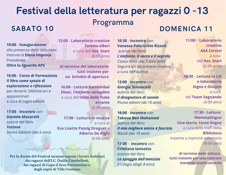 «Il Festival della letteratura per Ragazzi, quest’anno alla sua seconda edizione – aggiungono le bibliotecarie Silvia ed Eleniana -, nasce per creare un legame forte e incisivo tra i più giovani, il libro e la lettura. Unico nel suo genere sul nostro territorio, punta ad essere il fiore all’occhiello del panorama culturale dei Castelli Romani».