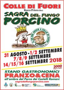 «Come tutti gli anni a Colle di Fuori, frazione del comune di Rocca Priora ha luogo la 26^ Sagra del Fungo Porcino, organizzata dall’associazione Pietro Pericoli.