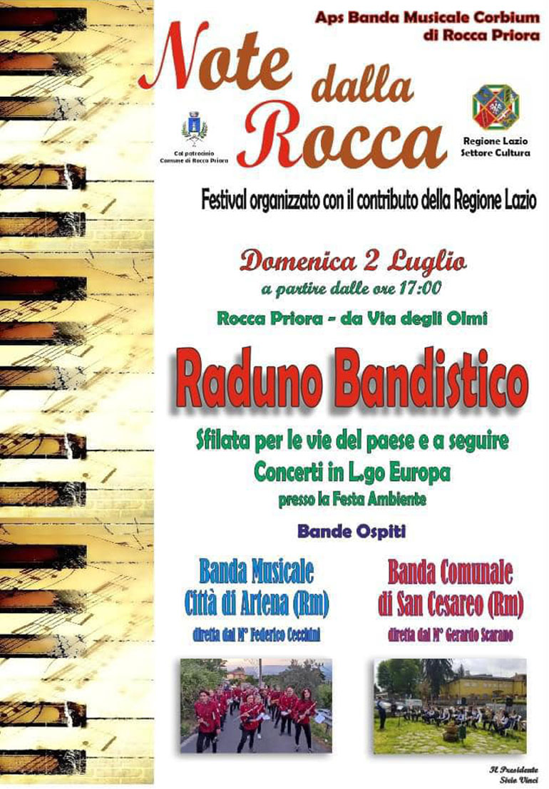 Il Festival delle Bande “Note della Rocca”, patrocinato dal Comune di Rocca Priora, è organizzato col contributo della Regione Lazio.
