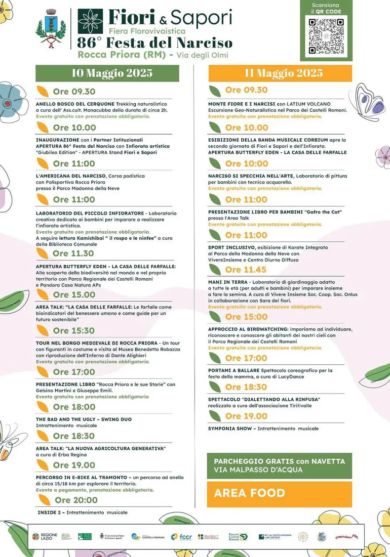 Rocca Priora festeggia il “suo” fiore primaverile. Sabato 10 e Domenica 11 Maggio 86^ Edizione della Festa del Narciso
