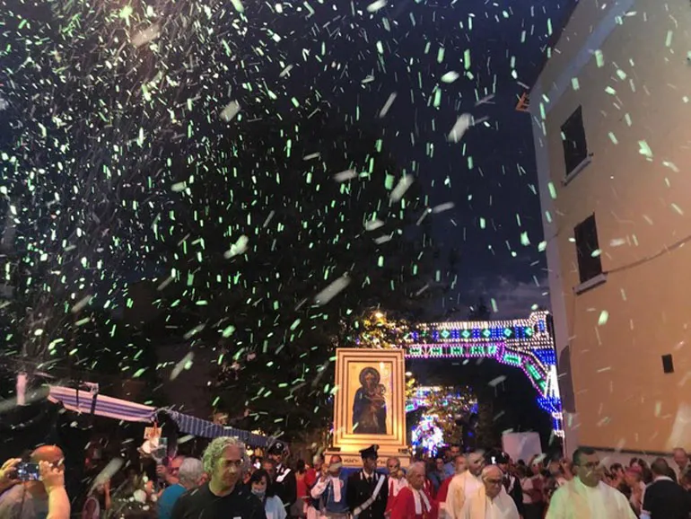 ROCCA PRIORA (Luciana Vinci) – Torna Sabato 5 Agosto 2023 a Rocca Priora l’incanto della nevicata d’Agosto con la processione che da più di 400 anni celebra la Madonna delle Neve e la simbiosi indissolubile di una comunità con la natura. I fiocchi candidi cadranno fitti sulla cittadina al tramonto. Dal 1600 propiziare copiose nevicate fu vitale per i roccaprioresi. È da allora che nel borgo più alto dei Castelli Romani si avviò una fiorente industria del ghiaccio, conservato in appositi pozzi, che veniva poi venduto a Roma per garantire refrigerazione quando i frigoriferi non esistevano.