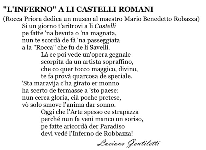 Qui di seguito l’immagine di copertina del Calendario ed una delle poesie in esso contenute: “L’Inferno” a li Castelli Romani di Paolo Gentiletti.