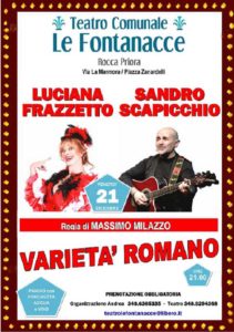 Uno spettacolo adatto a tutti, con Roma protagonista assoluta e alcuni dei suoi tantissimi artisti che l’hanno resa grande anche attraverso il Varietà: Anna Magnani e Gabriella Ferri, Alberto Sordi e Ettore Petrolini, Romolo Balzani e l’indimenticabile Trilussa. Ci saranno canzoni, sketch, monologhi e aneddoti. Insomma lo spettacolo sarà una girandola di comicità con battute esilaranti, sottintesi, ammiccamenti e buffi personaggi. Risate assicurate con Luciana e Sandro.