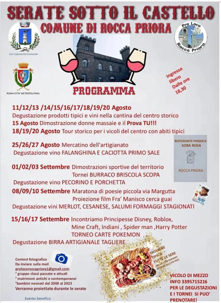 La Pro Loco di Rocca Priora dà appuntamento il 18, 19 e 20 Agosto alle 18.30 in piazzale Zanardelli, da dove partirà la visita guidata nel centro storico attraverso un vero e proprio racconto: i vecchi mestieri, la storia dei sovrani Savelli e degli scavatori di pozzi con sparo di neve, i sapori antichi, insieme a scorci e panorami mozzafiato. L’ingresso è libero e si può anche prenotare al numero 339.5715216.