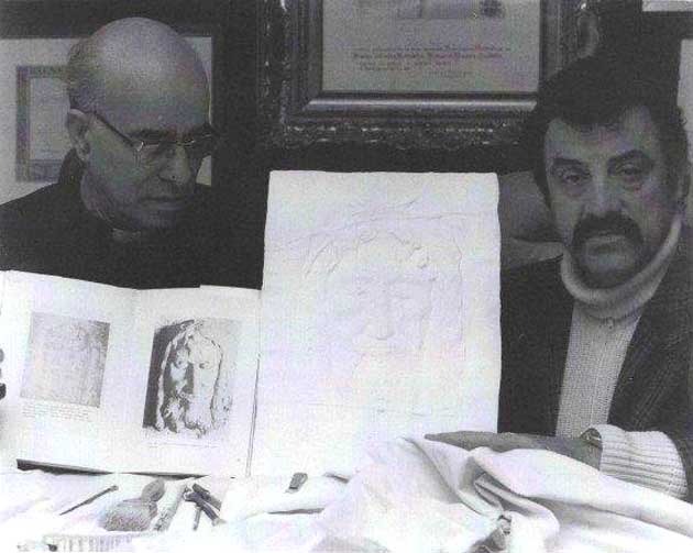 Si tratta della “Sacra Sindone”, incisione tridimensionale, in argento e oro, risalente agli anni ’90, a cui lo scultore, con lavori in tutto il mondo, ha lavorato per circa 3 anni, unitamente al grande studioso della Sacra Sindone, Monsignor Giulio Ricci.