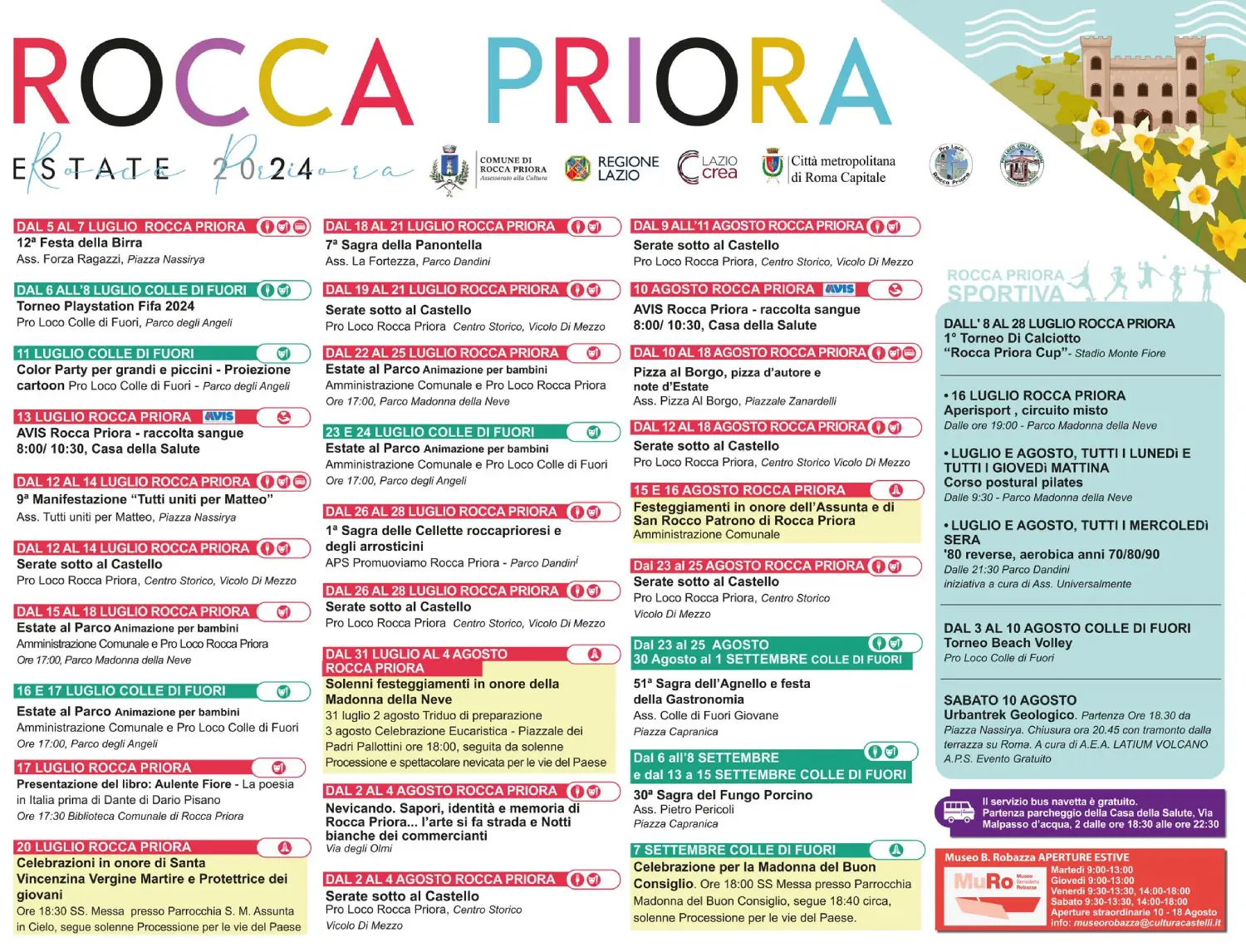 Qui sotto il palinsesto completo delle iniziative dell’Estate 2024 di Rocca Priora.