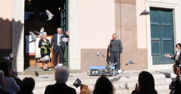All’uscita dalla Chiesa, un “volo di colombi”, dell’Associazione Colombi Viaggiatori Castellani, presidente Antonio De Nardis, ha accolto gli Sposi, tra gli applausi dei presenti.
