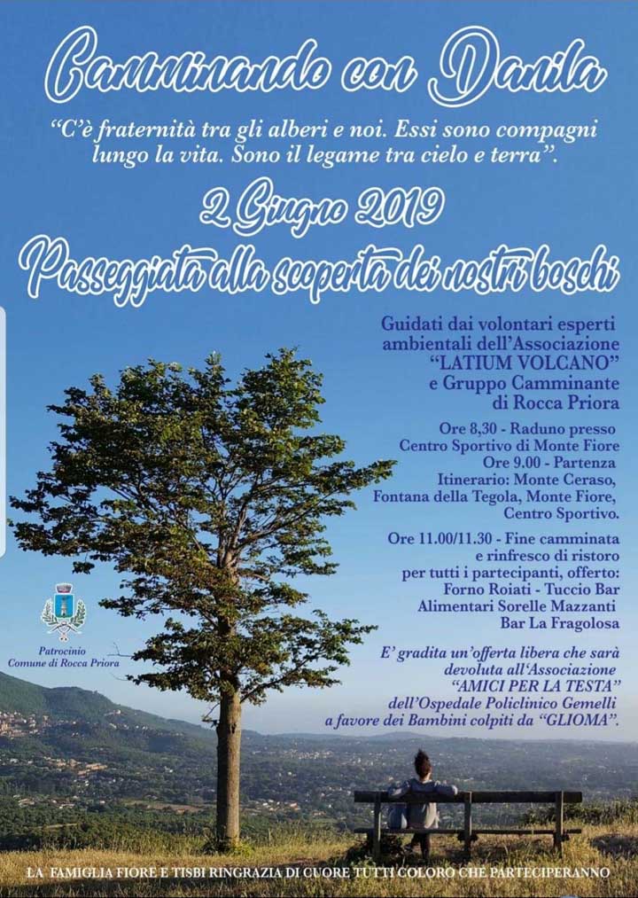 A ROCCA PRIORA (Anna Maria Pesce – Luciana Vinci) , nella mattinata di oggi, Domenica 2 Giugno 2019, i genitori, Marinella Tisbi e Franco Fiore, le sorelle, Martina e Claudia, e gli Amici, ricordano affettuosamente Danila, la psicologa scomparsa a metà gennaio a soli 33 anni, amante della natura e delle sue bellezze, con una:
