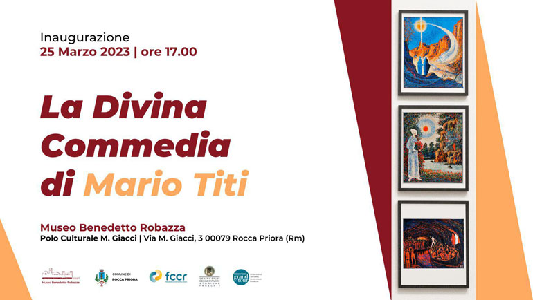 Il Comune di Rocca Priora, ha piacere di invitarvi all’inaugurazione della mostra retrospettiva La Divina Commedia di Mario Titi prevista per Sabato 25 marzo 2023 alle ore 17:00, curata dal Museo Benedetto Robazza in collaborazione con il Centro Studi e Documentazioni Storiche di Frascati e il Sistema Museale Museumgrandtour dei Castelli Romani e Monti Prenestini.