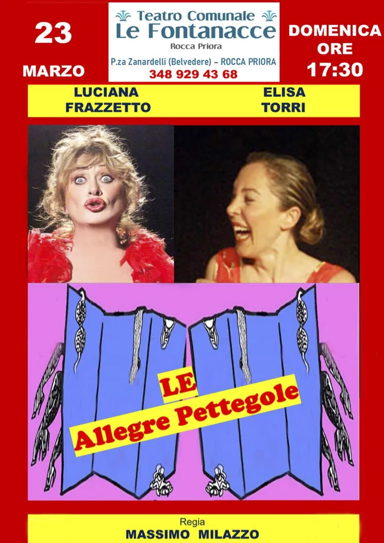 Rocca Priora. Stagione teatrale 2025 del Teatro Comunale Le Fontanacce. Domenica 23 Marzo, alle ore 17.30 andrà in scena “Le Allegre Pettegole”