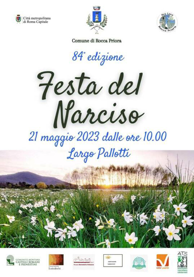 (L.V.) ROCCA PRIORA torna puntuale a celebrare il narciso, l’incantevole fiore spontaneo che a primavera stende nuvole candide sui prati del Comune più alto dei Castelli Romani. L’appuntamento con l’edizione numero 84 della Festa del Narciso è per Domenica 21 Maggio.
