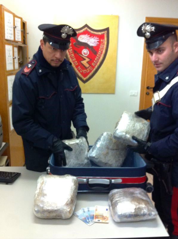 Roma. 5,5 Kg di marijuana nel trolley, nigeriano 24enne arrestato dai Carabinieri