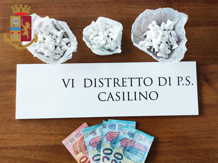 Sempre gli agenti del commissariato Celio hanno arrestato D. A. M. italiano di 37 anni per spaccio e detenzione ai fini di spaccio di sostanza stupefacente e resistenza a Pubblico Ufficiale. L’uomo è stato sorpreso in via San Gimignano mentre cedeva 0,40 grammi di cocaina ad un uomo in cambio di 30 euro. A quest’ultimo è stata contestata la violazione amministrativa mentre il 37enne si è opposto con forza all’arresto, una volta bloccato è stato sottoposto a perquisizione personale e trovato in possesso di 190 euro in contanti. A seguito della perquisizione dell’auto sono stati trovati 2,80 grammi di cocaina, 5,40 grammi di hashish, 2,30 grammi di marijuana mentre la perquisizione domiciliare ha permesso di rinvenire 0,80 grammi di hashish e 1 foglio di carta riportante nomi e cifre.
