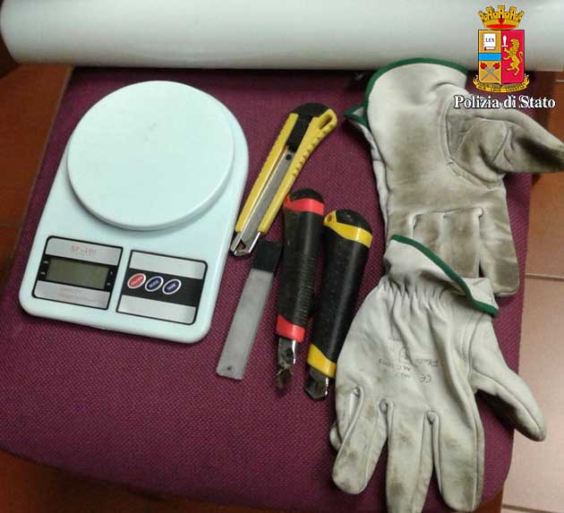 ROMA – Un Range Rover Sport rubato, dispositivi elettronici per rilevare le radiofrequenze ma anche 19 kg di marijuana e attrezzatura per il taglio e il confezionamento di sostanze stupefacenti.