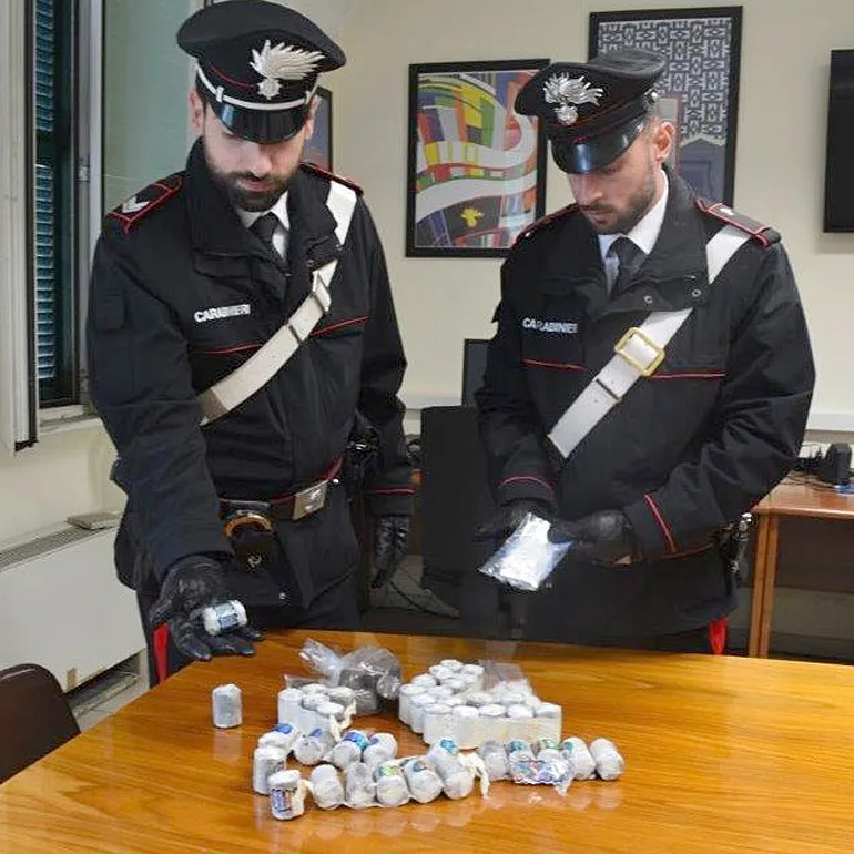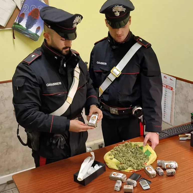 La perquisizione sul posto e la successiva effettuata presso il suo domicilio ha permesso ai Carabinieri di rinvenire 22 involucri di cocaina e 10 “panetti” di hashish per un peso complessivo di 1 kg la somma in contante di 9.100, ritenuta il provento di pregressa attività illecita di spaccio.