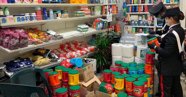 I Carabinieri hanno anche sequestrato 79 confezioni di bevande scadute e 346 confezioni di alimenti e bevande riportanti etichette in lingua straniera.